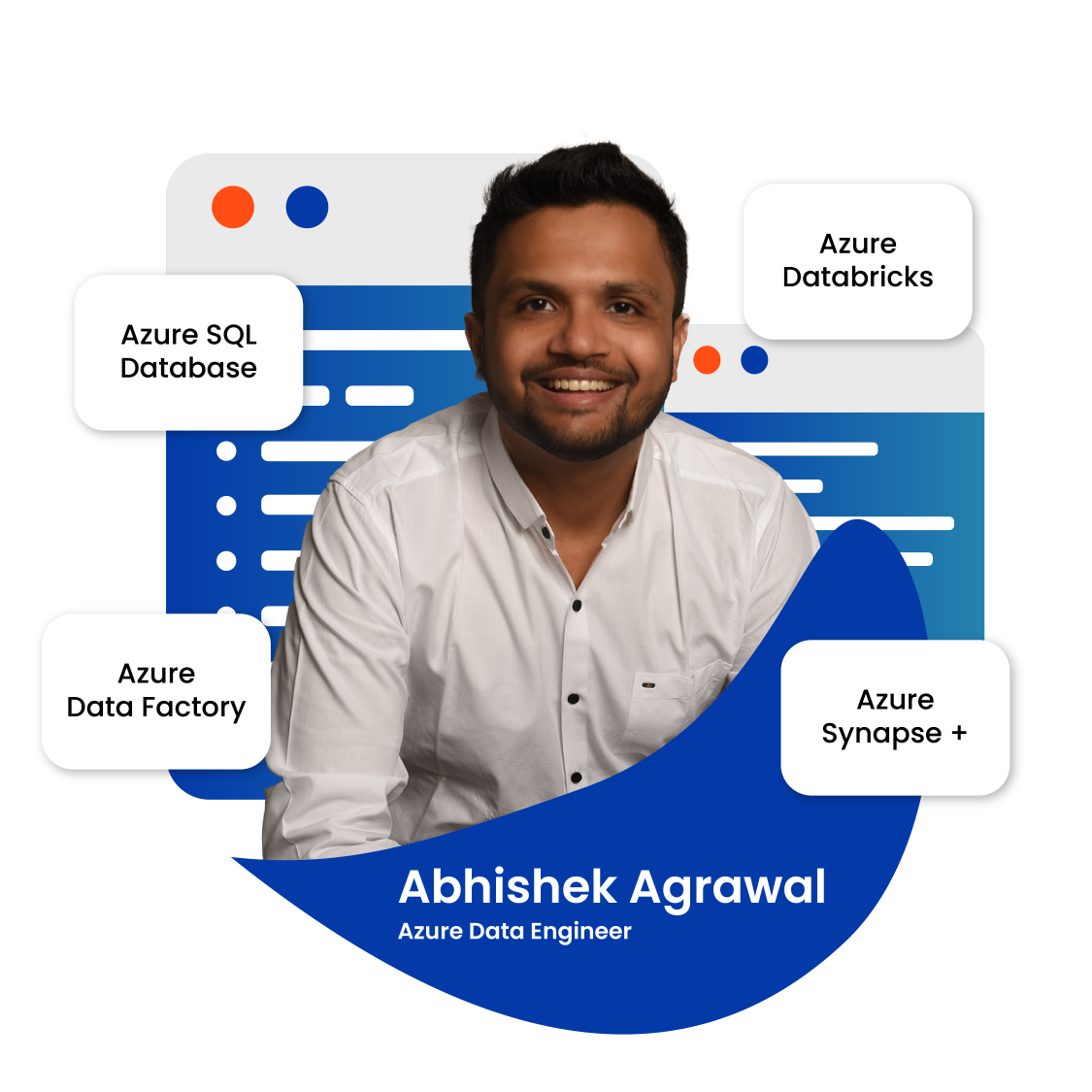 Abhishek Agrawal, a Microsoft Certified Azure Data Engineer with over 8 years of immersive hands-on experience, is a catalyst for career transformations in Azure Cloud. A distinguished NIT Raipur graduate, he specializes in Azure Data Factory, Databricks, Synapse Analytics, and Spark.